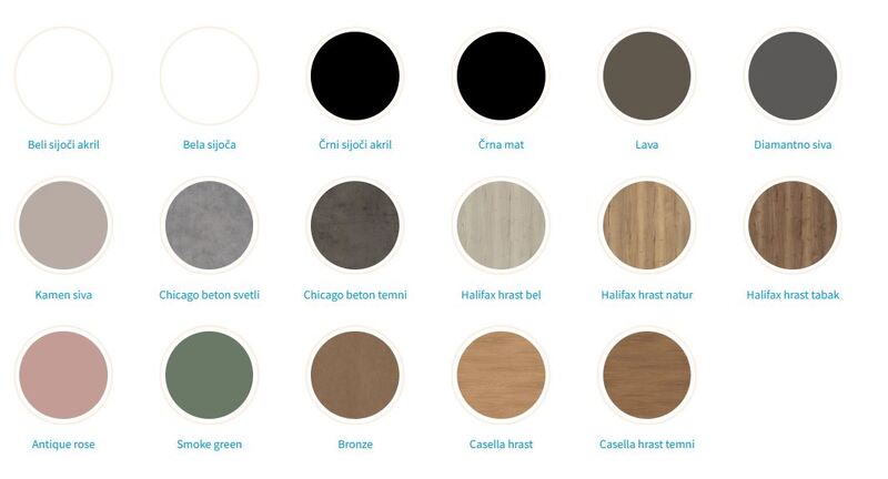 Pohištvo Arwen je prepoznano po svojih estetskih linijah in funkcionalnosti. Baze so lahko opremljene s predali, ki imajo mehanizem za mehko zapiranje (Soft close), ali vratnimi krili. Vse elemente je možno med seboj kombinirati in ločeno kupiti.