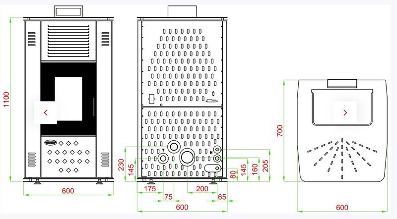 Peč je opremljena z ventilatorjem za topli zrak in drugimi varnostnimi elementi. Peč omogoča tudi nadzor preko WiFi modula, ima zaslon na dotik za upravljanje in je primerna za učinkovito ogrevanje z nizkimi emisijami ter varno uporabo.