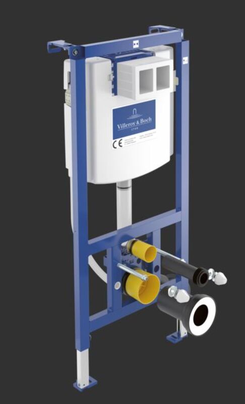 Villeroy & Boch ViConnect Wall Carrier Dry 92242700 (DUOFIX) je samostoječi nosilec za stensko obešeno WC školjko, namenjen suhi gradnji, z dimenzijami 52,5 x 112 x 13,5–20,5 cm. Ima vgrajen skrivni splakovalnik z dvojno funkcijo splakovanja (nastavljiv od 6/3 litrov, nastavitveni razpon 7,5–4,5 l / 4–2 l).